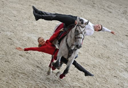 Rusya’da Kremlin Sarayı’nın atlı birliğinde görevli Kozaklar, nefes kesen gösteri yaptı. Kafkasların “doğuştan asker” milleti olarak bilinen Kozakların, Moskova’da düzenlenen ata binme ve at üzerinde kılıç sallama gösterisi beğeni topladı. At dörtnala giderken inip binen, at sırtında kılıç sallayan Kozak gençler, Kafkasya bölgesindeki halkların yiğit isimli geleneksel gösterilerini sundu. At sırtında ayakta duran göstericiler adeta şov yaptı.